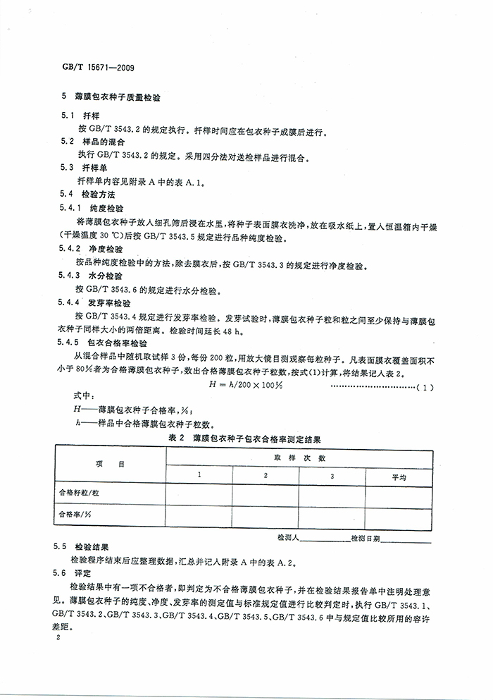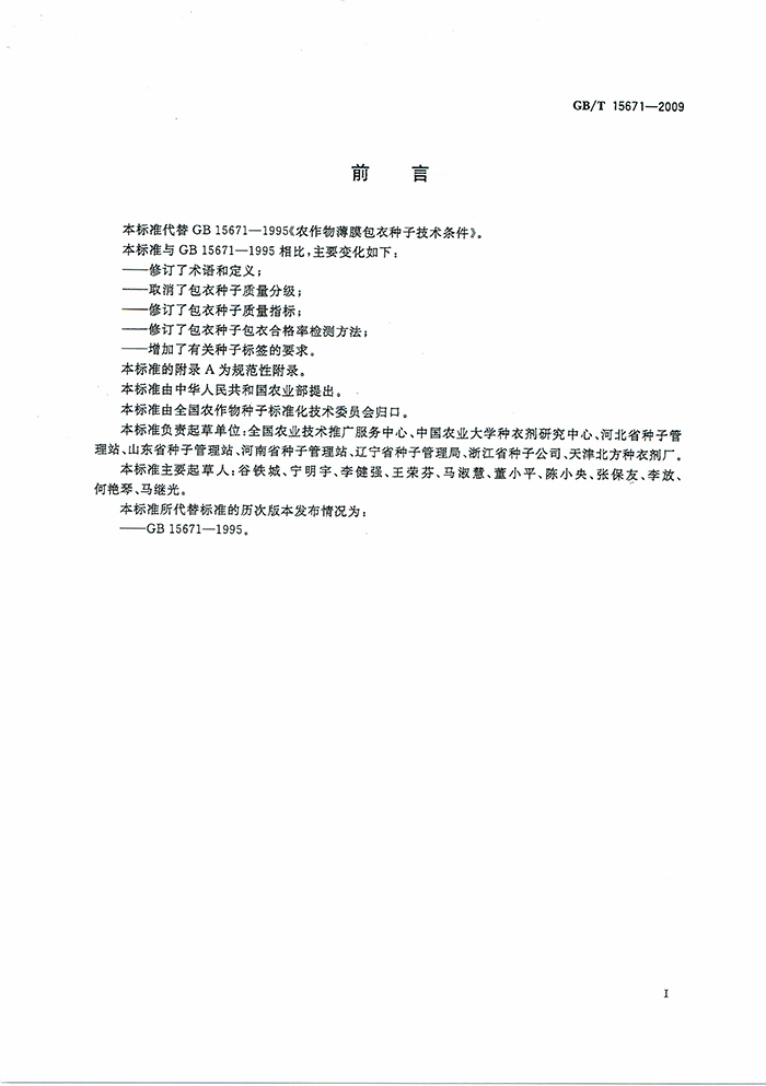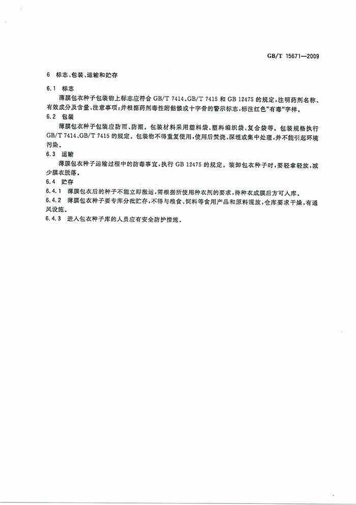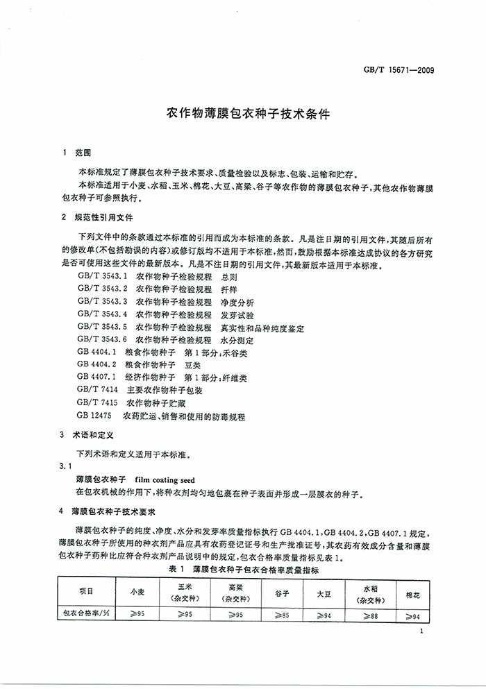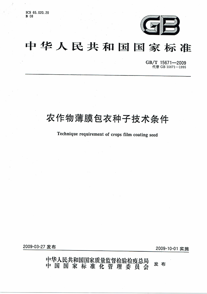 GB/T15671-2009農(nóng)作物薄膜包衣種子技術(shù)條件國家標準